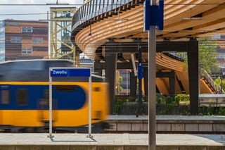 Mit der 130 m langen „Passerelle“ ist im September 2025 in Zwolle eine der größten Holzbrücken Europas eröffnet worden. Durch den Bau der Fußgängerbrücke entsteht in der Hauptstadt der niederländischen Provinz Overijssel ein neues Quartier, das die Altstadt mit ihren zahlreichen Kanälen, einen parkähnlichen Bahnhofsvorplatz und ein lebendiges Viertel zusammenführt.