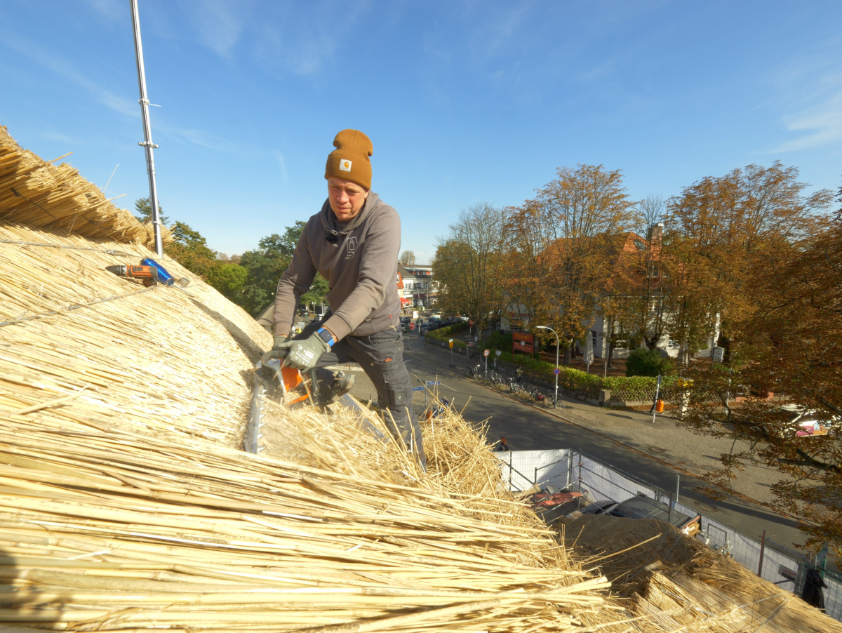 Die Dacharbeiten begannen im August 2023 und wurden von der Berliner Reetdachdeckerei Weichert ausgeführt
