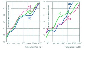 b) Dachziegel, m‘ = 42 kg/m2, Rw = 48 dB