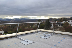 Das Arbeitsschutzgeländer aus Aluminium benötigt keine Dachdurchdringungen zur Fixierung. Das System ist für Dachneigungen bis 5° einsetzbar, unabhängig vom Untergrund. Kleine Unebenheiten können dank höhenverstellbarer Pfosten ausgeglichen werden. Durch seine wenigen Bauteile, die schnelle Montage und die frei einstellbare hohe Spannweite von bis zu 2,60 m zwischen den Geländerpfosten ist es sehr variabel. Gleichzeitig eignet es sich auch für lange Strecken und Großprojekte. Besonderer Vorteil des Arbeitsschutzgeländers „Fallnet ASG“ von Zinco ( https://www.zinco.de) ist die Möglichkeit, das Geländer senkrecht oder in einem Winkel von 67,5 ° geneigt zu montieren, ohne die vorgeschriebene Mindest-Geländerhöhe von einem Meter zu unterschreiten. Durch diese Schrägstellung entsteht ein optisch gefälliger Dachabschluss. Je nach Blickwinkel ist das Geländer dadurch von unten nicht sichtbar, was mancher Architekt oder Gebäudebesitzer als Pluspunkt sehen wird.