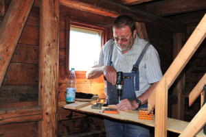 Friedrich Münkle ist Turmwart des Vereins. Als Hauptverantwortlicher der Renovierung wollte er zunächst nur den Turm außen und innen mit Dielen aus heimischer Douglasie erneuern. Doch dabei blieb es nicht, denn Nässe und Schädlingsfraß hatten dem Fachwerk im Laufe der Jahre zugesetzt. Die beschädigten Balken wurden erneuert und das Sandsteinfundament mit einem Kupferblech verkleidet. So konnte ein Holzboden darauf verlegt werden. Außerdem erhielt der Turm zwei neue Holztreppen zu den oberen beiden Stockwerken. Diese Arbeiten übernahmen ein Klempner und ein Zimmerer aus den nahe gelegenen Ortschaften unter Mithilfe von Münkle. Um den Rest kümmerte sich der Turmwart selbst – fast eineinhalb Jahre lang.