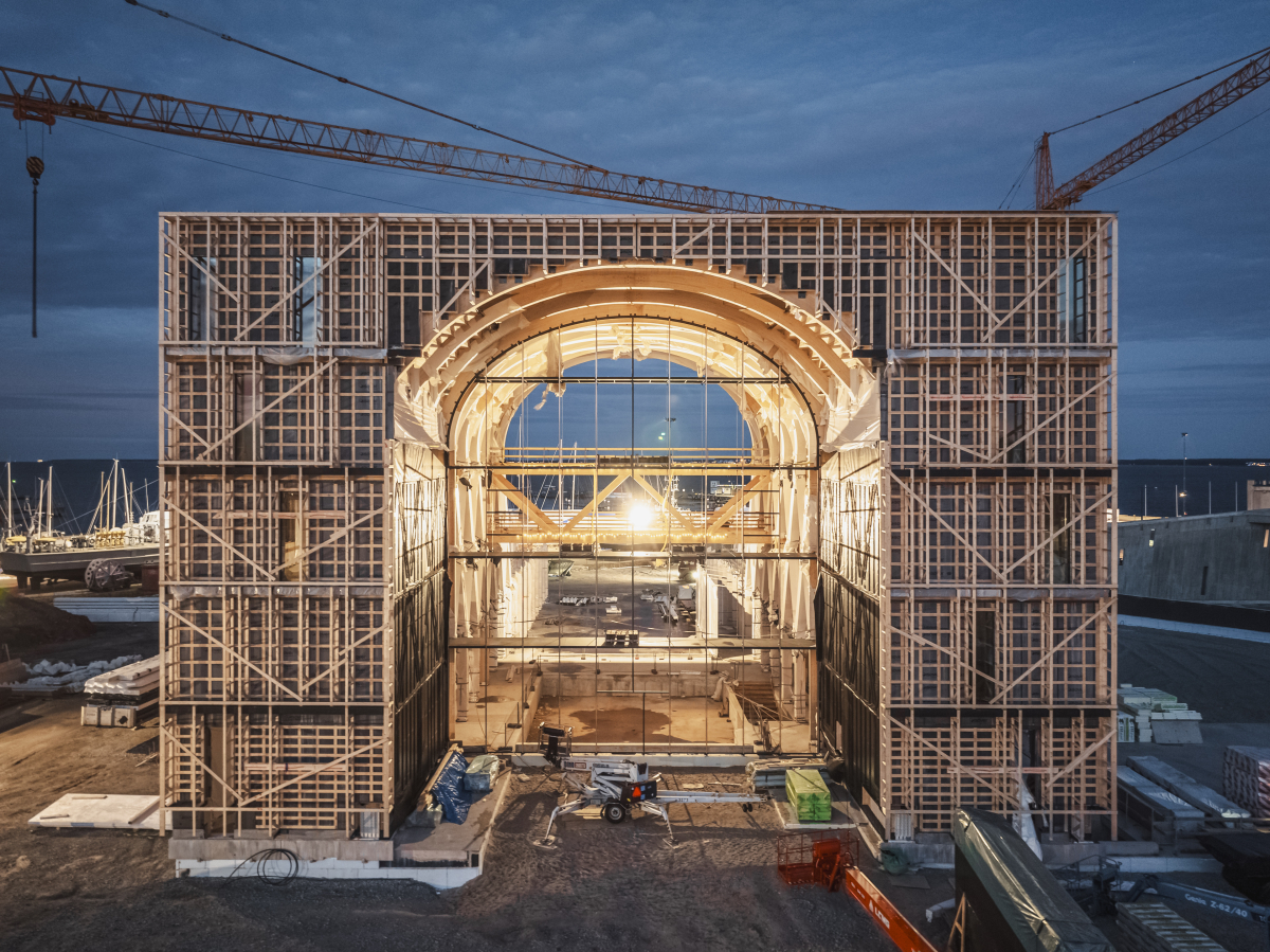Das fünfgeschossige Hauptgebäude („Dokhouse”) erhält ein 58 m langes und 16 m breites Atrium – komplett aus Holz