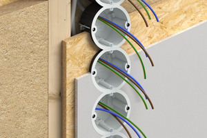 Die Hohlwanddosen „HWD 90“ sind für den Einsatz in Holzrahmen- und Holztafelbauwänden zugelassen. Das Deutsche Institut für Bautechnik (DIBt) hat die Zulassung der Brandschutzdosen entsprechend ausgeweitet. Bei Holzwänden halten die Dosen den Brandschutz mit einer Feuerwiderstandsdauer von F30-B oder F60-B aufrecht. Sie können in Wänden mit Dämmstoffen aus Glas- oder Mineralwolle und bei Wänden mit Holzfaserdämmungen eingesetzt werden, die mit 15 mm dicken Holzwerkstoffplatten beplankt sind. In Kombination mit einer Gipskartonplatte ergibt sich eine Brandschutzwand der Klasse F30-B, mit einer Gipskarton-Feuerschutzplatte in einer Dicke von 12,5 mm wird F60-B erreicht. Die Hohlwanddosen sind außerdem für Brandschutzwände gemäß DIN 4102-4 oder in Wänden mit einem allgemeinen bauaufsichtlichen Prüfzeugnis oder einer allgemeinen Bauartgenehmigung zugelassen. Möglich macht dies die „AFS“-Technik der Hohlwanddosen: Ein umhüllender Dämmschichtbildner schäumt im Brandfall auf und verschließt alle Installationsöffnungen. So bleibt die Feuerwiderstandsklasse der Wand erhalten.
