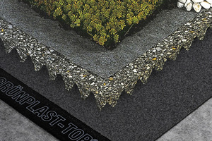 Bei der Erstellung des Gründachs bewegt sich der Dachdecker erst einmal auf vertrautem Terrain: Die Basis des Icopal-Gründachaufbaus bildet eine Elastomerbitumenbahn (Dampfsperr- und Ausgleichsschweißbahn) wie die „Alu-Villatherm“ für einschalige, nicht belüftete Dächer. Dank des „Power-Therm“-Profils ermöglicht die Bahn eine sehr hohe Klebkraft mit sofortiger Klebewirkung. Darüber wird beispielsweise die Sicherheitsdämmbahn „Grünplast-EPS“ verlegt. Sie besteht aus einer EPS-Dämmung und einer werkseitig aufgebrachten, durchwurzelungsfesten Elastomerbitumenbahn („Grünplast“) als erste Abdichtungslage.