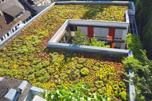 Die „Icoflor“-Platte im Format von etwa 1 x 1 m speichert Regenwasser für die Begrünung und leitet überschüssiges Wasser ab