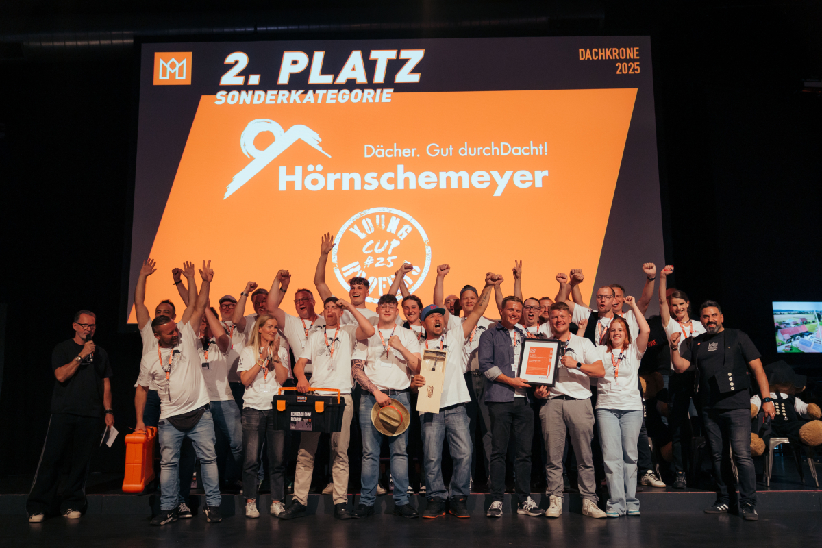 Das Team der Firma Hörnschemeyer Dächer aus Wallenhorst wurde für das Konzept des „Young Roofers + Roofers Friends Cup” in der Sonderkategorie der „Dachkrone 2025“ mit dem 2. Platz ausgezeichnet