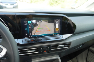 Die Assistenzsysteme des „Caddy V“, wie etwa die automatische Leuchtweitenregelung und der Spurhalteassistent, haben schnell reagiert und gut funktioniert. Das digitale Cockpit des kompakten Transporters ist übersichtlich und besteht aus zwei Bildschirmen: Der erste befindet sich hinter dem Lenkrad und bietet die gewohnten Armaturen-Anzeigen, ein weiterer Bildschirm befindet sich in der Mitte des Armaturenbretts und bietet zusätzliche Funktionen, unter anderem ein Navi, eine Rückfahrkamera-Anzeige und eine Sprachsteuerung für das Fahrzeug. Das im Testfahrzeug eingebaute Navigationssystem „Discover Pro“ mit 10" Touch-Farb-Display hat mit 1904 Euro einen stolzen Preis, in der Bedienung und Nutzbarkeit hat es aber überzeugt. Wer darauf verzichten möchte, kann alternativ mit dem iPhone oder Smartphone per „Apple Carplay“ oder „Google Maps“ navigieren, das setzt aber eine Handyhalterung voraus.