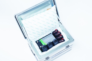 Zarges ergänzt sein Portfolio um eine „Akku Safe Universal Box“ im XL-Format mit einem Nutzvolumen von 31 Litern. Dank des Außenmaßes von 740 x 510 x 410 mm und des verifizierten Nutzmaßes von 515 x 285 x 215 mm im Innenraum lassen sich mit der „Akku Safe Universal XL“ auch besonders große oder unhandliche Lithium-Akkus sicher transportieren und lagern. Zusätzlich bietet der vergrößerte Stauraum mehr Flexibilität und ausreichend Platz für eine Vielzahl unterschiedlicher Akku-Typen. Während die Standardgröße der Akku-Box für Nennwerte bis 1384 Wh abgesichert ist, hat die neue XL-Variante den Realbrandtest der Bundesanstalt für Materialforschung und -prüfung für Nennwerte bis 3500 Wh bestanden. Die Akkus werden in den Boxen sicher zwischen einteiligen Kissen verstaut. Das Aluminiumgehäuse der Boxen ist robust, langlebig und erhöht im Gegensatz zu Kunststofflösungen nicht die potenzielle Brandlast. Im Brandfall bleiben die Außentemperaturen unter 100 °C und Flammen oder Splitter können nicht aus der Box austreten. Diese wiegt 25,3 kg und ist zudem für Gefahrguttransporte nach ADR-Vorschrift von kritisch defekten Batterien zugelassen. Der Hersteller gewährt 10 Jahre Garantie.