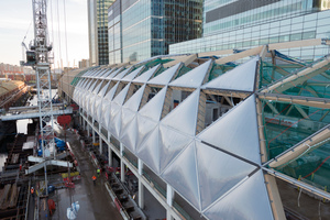 Mit dem Einbau der Mebrankissen der Firma Seele Austria waren die Bauarbeiten an der Dachkonstruktion abgeschlossen. Auf den anderen Etagen werden bis 2018 noch diverse Arbeiten durchgeführt. Trotzdem soll die Haltestelle Canary Wharf im April 2015 eröffnet werden, 2018 dann die gesamte Bahnlinie, die unter anderem den Flughafen Heathrow mit Ost-London verbindet.