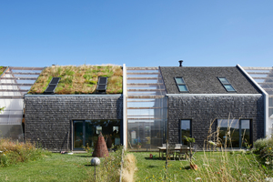 Für die Belichtung wurden die Häuser mit elf Velux-Dachfenstern (78 x 98 cm) auf der Nordseite und mit 16 Dachfenstern auf der Südseite (78 x 118 cm) ausgestattet. Nach Süden erfolgte die Anordnung der Fenster als Zweier-Kombination übereinander, so dass diese wie ein vertikales Lichtband vom Kniestock bis fast zur Decke reichen. Das natürliche Tageslicht spielt auch bei den „bioklimatischen“ Wintergärten eine enorme Rolle. Diese sind mit ihren großen Glasflächen so konzipiert, dass sie die Wärme der Sonne tagsüber speichern, um sie nachts zurückzugeben und das Haus so zu erwärmen.