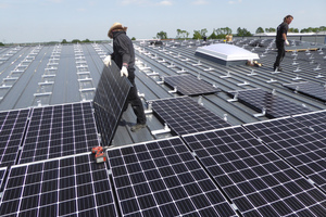 Neben der Verwendung des Baustoffes Holz setzt die Bauherrin auch auf einen CO2-neutralen Betrieb der neuen Produktionsstätte. Die Halle kommt ohne konventionelle Energieträger aus, geheizt wird mit Erdwärme. Die Solewärmepumpe, die elektrotechnische Gebäudeausstattung sowie Maschinen und Flurförderzeug werden aus einer 50 kWp Solaranlage gespeist, die auf dem Dach montiert ist. Die Solaranlage liefert dabei sogar noch einen Energieüberschuss, der ins Netz eingespeist wird.