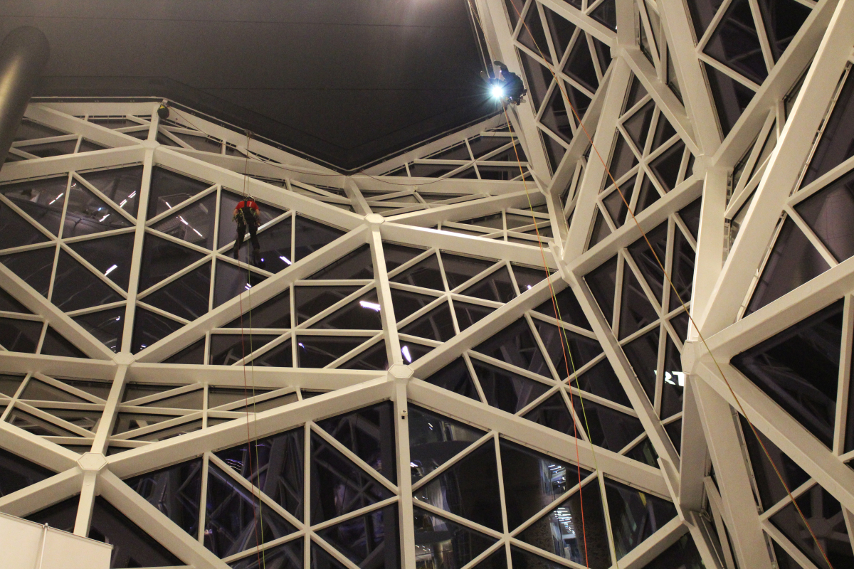 Ein Highlight des diesjährigen Fachkongresses war die Höhenarbeitsdemonstration im Atrium des Axel-Springer-Neubaus