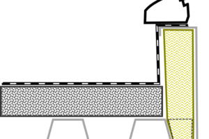 Neben konkreten Maßnahmen beschreibt die Norm alternativ eine Brandprüfung, mit der sich die Eignung bestimmter Aufbauten prüfen lässt. Diesen Weg hat der Hersteller Lamilux gewählt. Bei dem „Lichtband B“ von Lamilux sind dadurch mit Ausnahme der Profilfüller im Querstoß keine zusätzlichen Brandschutzmaßnahmen erforderlich. Das der Prüfung zugrundeliegende Lamilux-Detail sieht eine nicht brennbare Zargendämmung vor und kommt mit nur 15 cm Zargenhöhe aus. Ein vergleichbares Gutachten hat auch das weniger verbreitete „Lichtband S“ von Lamilux (siehe Grafik oben rechts). Es unterscheidet sich lediglich in der Mindest-Zargenhöhe.