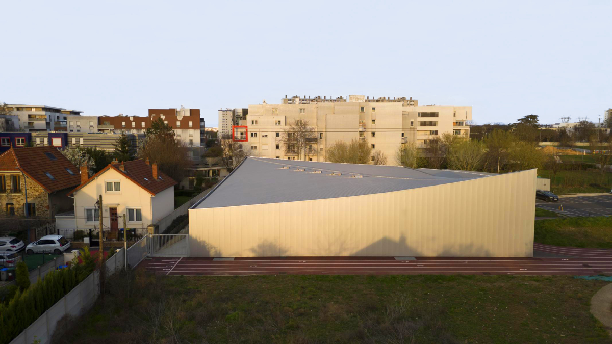 Ein wichtiger Aspekt in der Planung der Sportstätte war die Einbindung des Neubaus in die umliegende Nachbarschaft. Das Gelände wurde mit vielen Lauf- und Sprintstrecken sowie einem begehbaren Hügel für Fußgänger und Kinder aufgeschlossen gestaltet. Für Passanten nicht ersichtlich ist die Form und Ausrichtung des Daches, die die Lichtführung beeinflussen. Mit Rücksicht auf die umliegende Bebauung wurde die Höhe des Gebäudes am natürlichen Lichteinfall ausgerichtet. Die klassische Höhe einer Sporthalle in Frankreich beträgt etwa neun Meter. Die neu errichtete Sporthalle in Choisy-le-Roi sollte jedoch in die vorhandene Wohnsiedlung integriert werden, was die Architekten vor eine Herausforderung stellte: Die Halle hätte in der Höhe nicht nur die Sicht der Bewohner der umliegenden Gebäude eingeschränkt, sondern teilweise auch die Sonnenlichteinstrahlung begrenzt. Indem die gesamte Halle einige Meter ins Erdreich abgesenkt und das hintere Ende des Daches entsprechend geneigt wurde, wird der Schattenwurf reduziert und der Einfall des Tageslichtes auf die Nachbargebäude gelenkt.