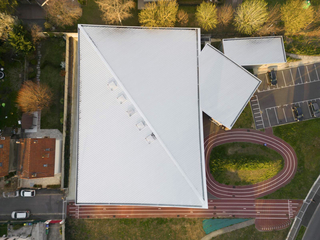 Die Aluminium-Stehfalzprofile und das „FC“-Fassadensystem von Kalzip konnten mit ihrer gestalterischen Flexibilität und Materialgleichheit beim Neubau des Sportzentrums in Choisy-le-Roi punkten. Die Aluminiumpaneele des Fassadensystems gelten dabei als sehr robust und widerstandsfähig. Beschädigte Paneele an der Fassade lassen sich später einfach austauschen, das ermöglicht eine Instandhaltung der Fassade ohne umfangreiche Sanierungsarbeiten.