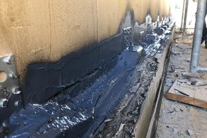 Ganz neu ist dieses Prinzip nicht. Die Flüssigdichtung basiert stofflich auf den seit Jahrzehnten bewährten Arylat-Anschlussklebern. Das heißt, es bestehen langjährige Praxiserfahrungen hinsichtlich der Alterung und Flexibilität. Als Lösemittel wird einfach Wasser eingesetzt. Je schneller es trocknet, desto schneller wird aus der flüssigen Dispersion eine flexible Folie. Bei saugenden, beispielsweise steinigen Untergründen dauert dieser Prozess nur wenige Minuten. Auf nicht saugenden Untergründen, etwa auf Beton oder bei kalten, feuchten Klimabedingungen im Winter, dauert es entsprechend länger. Dabei ist die Beurteilung, ob die Folie schon trocken ist, ganz einfach: Während des Trocknungsprozesses ändert sich die Farbe der Dispersion von blau zu schwarz.