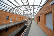 Bei der Belichtung hoher Hallen – mit Kunst- oder Tageslicht – taucht grundsätzlich ein Problem auf: Ein Teil des Lichts verliert sich im oberen Teil des Raumes, statt auf der Nutzebene, die meist ein bis zwei Meter über dem Hallenboden liegt, zu wirken. Genau für diesen Anwendungsbereich hat Interferenz, der Hersteller der Tageslichtröhre Solatube, ein neues Modell entwickelt, welches aufgrund eines sogenannten Amplifiers das Licht nicht diffus verteilt, sondern gerichtet in Richtung Hallenboden lenkt. Das Licht wird bei der Serie M 74 nicht durch eine Acrylglaskuppel eingesammelt, sondern mit Hilfe eines patentierten Zylinders, der aus Reflektor und Prismen besteht. Die große Fläche der Lichtaufnahme und der Reflektor sorgen gegenüber den bisherigen Industrieserien an sonnigen Frühlings- und Herbsttagen für eine dreifache Lichtausbeute.