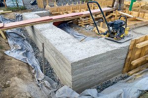 Das Fundament für das erste von vier Fachwerkhäusern im Naturdorf Bärnau entsteht (rechts im Bild)