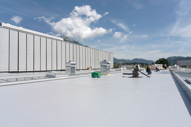 Die neuen Universalbahnen „Universal Pro“ von Icopal vereinen die Eigenschaften von flexiblen Polyolefinen (FPO) mit den Vorteilen von polymermodifizierten Bitumen: dauerhafte Dichtigkeit, schnelle Verlegung, gutes Fügeverhalten im Nahtbereich und Langlebigkeit. Die Abdichtungsbahnen werden auf Basis von Polyolefin-Copolymer-Bitumen (POCB) hergestellt. Der Glas-Polyester-Verbundträger (250 g/m²) der neuen Abdichtungsbahnen sorgt für eine hohe Zugfestigkeit und Belastbarkeit und macht die Bahnen dimensionsstabil und reißfest. Außerdem sind sie hagelschlagfest, witterungs- und UV-stabil, also auch ohne Bestreuung oberflächengeschützt. Zudem sind die Bahnen frei von Weichmachern. Dabei flossen in die neuen Universalbahnen auch die aktuellen technischen Icopal-Features ein: von der Sicherheitsnaht über „Cut-Lines“ bis zum „T-Cut“. Die doppelte Sicherheitsnaht verhindert beim Verschweißen Verbrennungen am Dämmstoff. Die Bahnen sind per Gasbrenner oder Heißluftfön verschweißbar. Dank der „Power-Thermstreifen“ kann die Bahn direkt auf einer EPS-Dämmung verlegt werden. Die Universalbahnen gibt es für viele Anwendungen und in verschiedenen Varianten, auch in einer durchwurzelungsfesten Version für Dachbegrünungen.