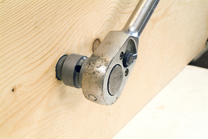 Zum Eindrehen der Gewindestangen wird eine Eindrehhülse benötigt, die als Zubehör erhältlich ist. Mit dieser Montagehilfe sind die Verstärkungen direkt versenkbar. Die Hülse wird per Hand auf den Stangenkopf aufgedreht und danach mit der Antriebsmaschine verbunden. Gearbeitet wird dabei mit drehmomentstarken Bohrmaschinen. Für den Durchmesser 16 mm sollen mindestens 150 Nm aufgebracht werden können, bei 20 mm sind es 220 Nm. Nach der Montage kann die Eindrehhülse problemlos mit einer Knarre gelöst werden.