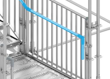 Treppentürme vor Gerüsten müssen laut Landesbauordnungen mit durchgehenden Handläufen ausgestattet sein. Dafür geeignet ist der „Systemhandlauf“ von Layher, der aus drei Einzelteilen besteht: einem...