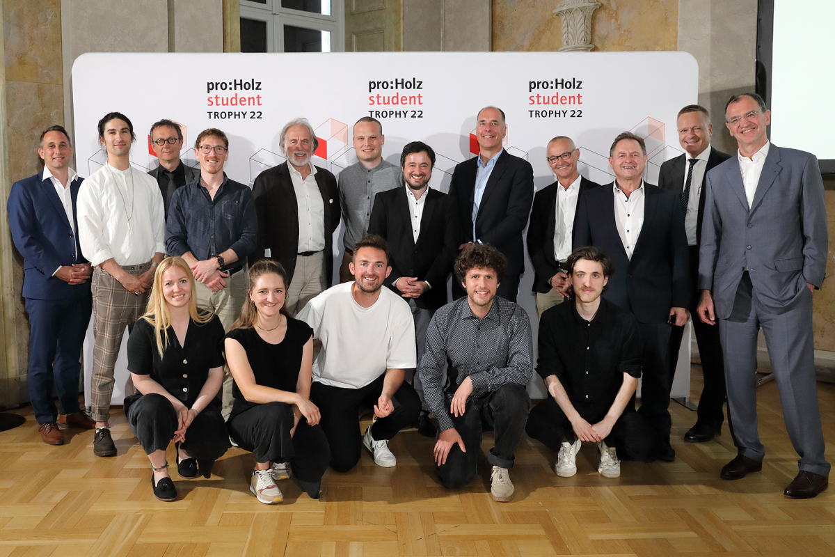 „Mit der proHolz Student Trophy möchten wir junge Menschen in Ausbildung für das vielseitige Material Holz begeistern und anhand konkreter Aufgabenstellungen eine theoretische wie praxisbezogene Vermittlung von Knowhow erreichen. Ziel ist es, die klimawirksamen Eigenschaften und gestalterischen Möglichkeiten des Baustoffs Holz in Zukunft noch stärker zum Einsatz zu bringen,“ so Richard Stralz, Obmann von proHolz Austria. Für die proHolz Student Trophy 22 kooperierten proHolz Austria und proHolz Bayern erstmals mit den Städten Berlin, München und Wien. Diese erleben seit Jahren einen enormen Zuzug. Für Berlin wird in diesem Jahrzehnt ein Zuwachs von 260.000, für München von 140.000 und für Wien von 120.000 Menschen erwartet. Die Städte stehen vor der Herausforderung, Wohnraum und Infrastruktur zu schaffen, dabei aber die Bodenversiegelung einzubremsen und den Klimazielen zu entsprechen. Der Baustoff Holz gewinnt in diesem Kontext mit seinen zahlreichen Qualitäten und Vorteilen zunehmend an Bedeutung. Mit Holz zu bauen bedeutet, einen aktiven Beitrag zum Klimaschutz zu leisten und Ressourcen zu schonen. „Wir bauen nicht um des Bauens willen, wir bauen für Menschen. Gebäude müssen den Menschen dienen und ihr Fußabdruck muss möglichst klein sein. Das bedeutet sorgsamen Umgang mit den Ressourcen, auch mit dem nachwachsenden Rohstoff Holz, und langlebige, rückbaubare und wiederverwendbare Konstruktionen. Nehmen wir Bauen im gesellschaftlichen Kontext ernst, landen wir selbstverständlich beim Holzbau“, betont Alexander Gumpp, Vorsitzender von proHolz Bayern.