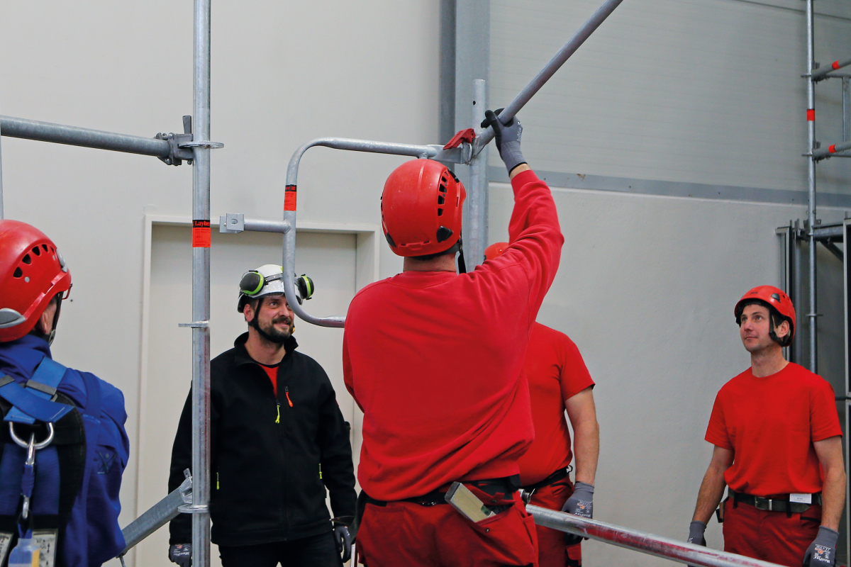 Bei den Layher-Technik-Seminaren vermitteln erfahrene Schulungsingenieure theoretische und praktische Grundlagen, beispielsweise in der Schulung „Fachkunde AGS – Das modulare Fassadengerüst“