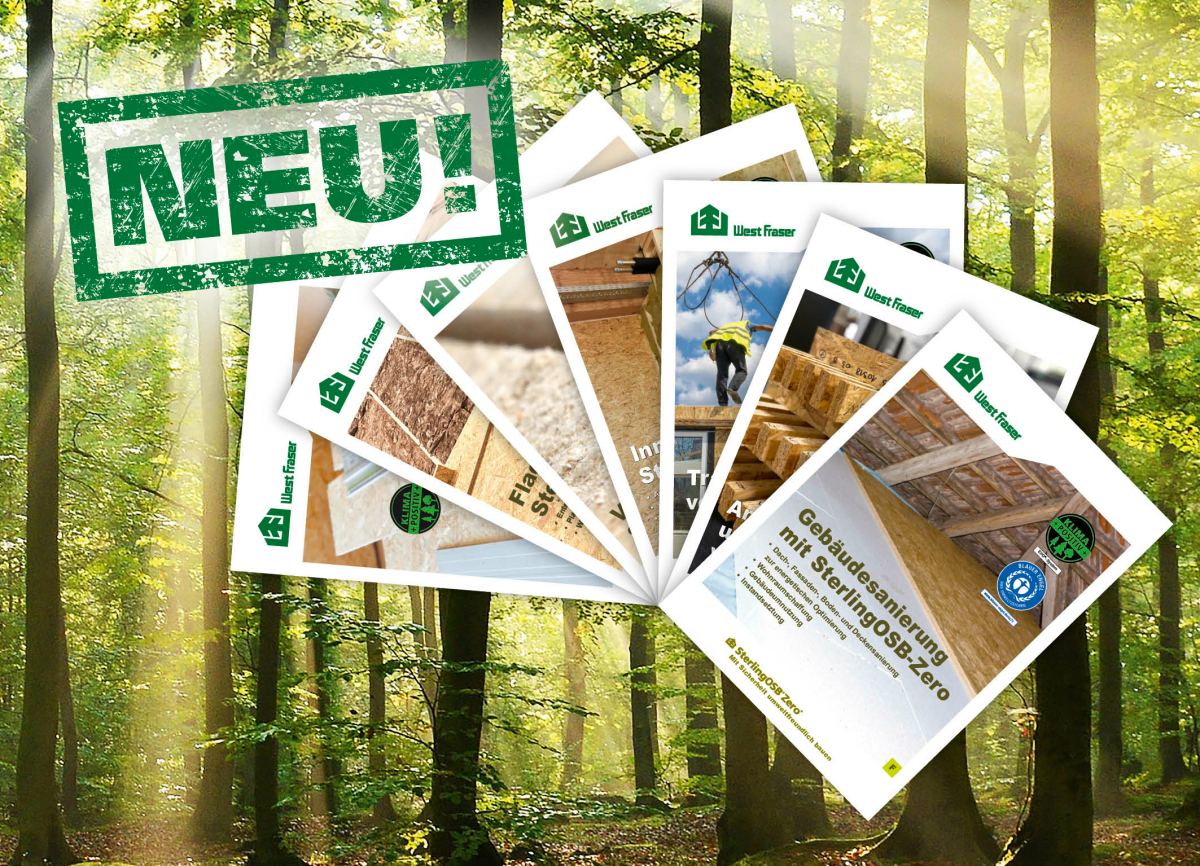 Die Reihe „Klimapositive Informationen“ umfasst sieben Broschüren mit Praxiswissen rund um die Verarbeitung der „SterlingOSB-Zero kompakt“-Platten