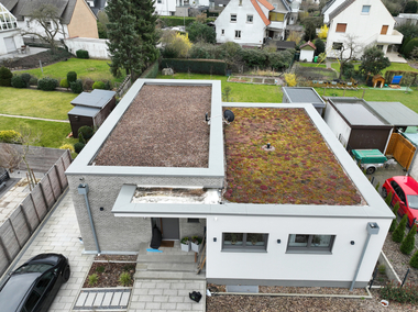 Das Flachdach eines neu gebauten Einfamilienhauses in Minden wurde als Umkehrdach konzipiert. Dabei wurde die eine Hälfte des Daches mit Kies, die andere mit einer extensiven Begrünung ausgestattet....